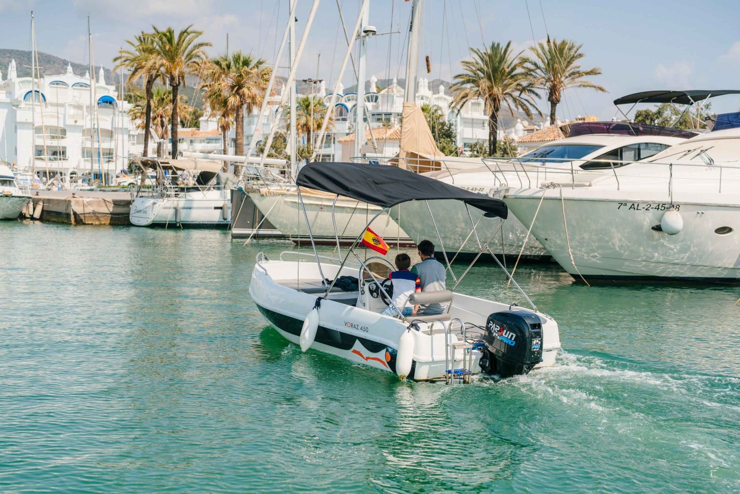 Benalmadena: 6-personers speedbåd uden kørekort - bådudlejning