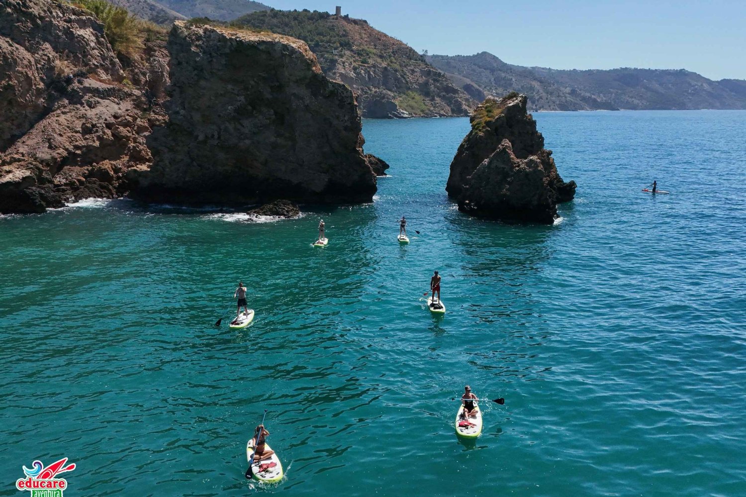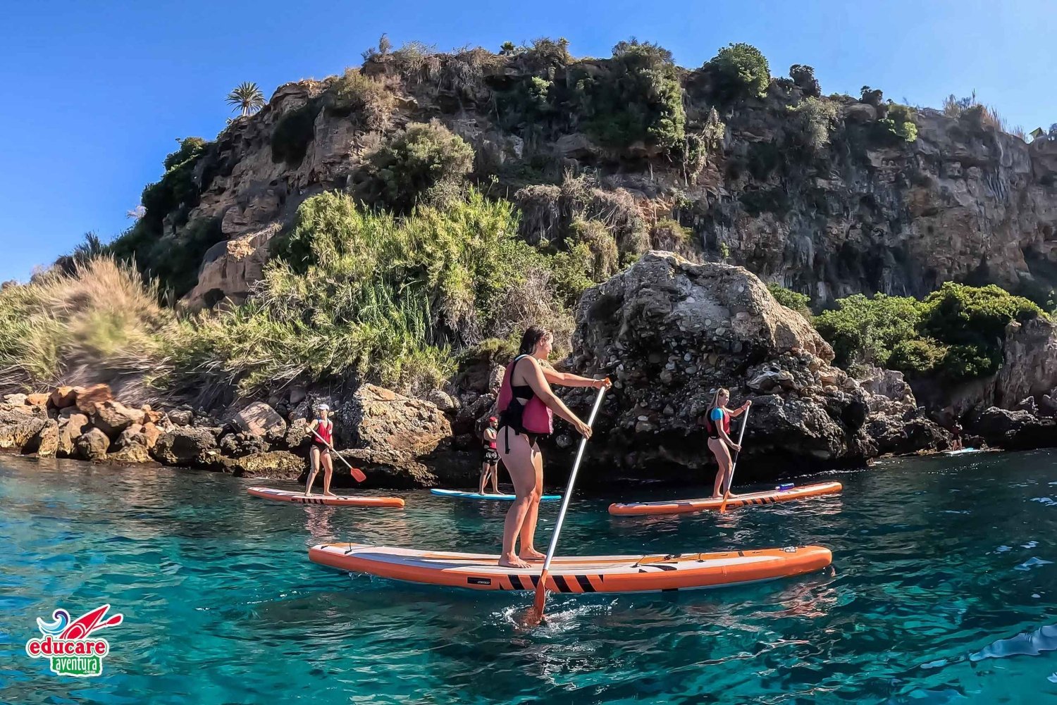 Derefter padler du fra Burriana-stranden langs klipperne ved Maro-Cerro Gordo, hele vejen til Maro-vandfaldet og Acantilado-hulerne. Udforsk hulerne fra brættet, men også under vandet med dit eget snorkeludstyr (ikke inkluderet). Nyd klippeformationerne samt koraller og farverige fisk.