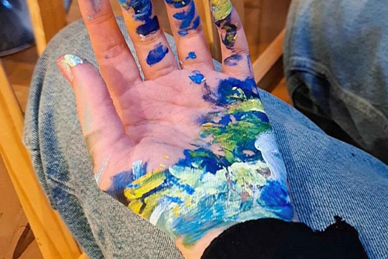 - Vi får en dejlig oplevelse af at komme i kontakt med os selv og andre gennem dette særlige maleri i et roligt og varmt miljø.