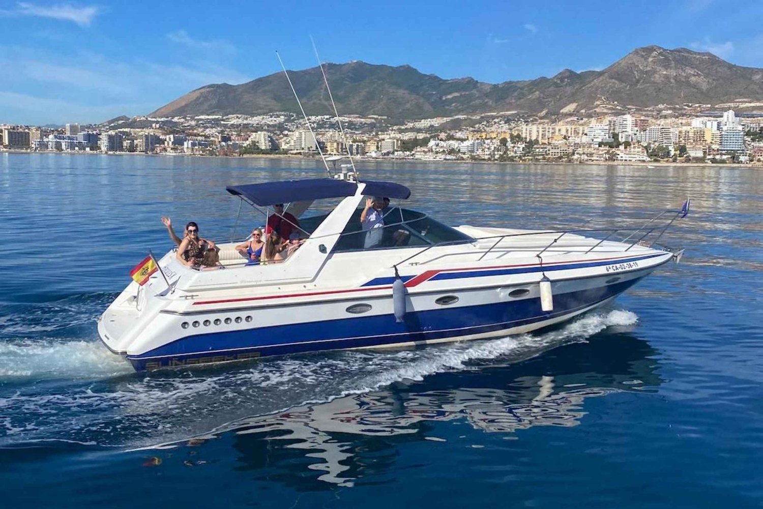 - Du fährst an der Küste von Benalmádena an Bord eines privaten Schnellboots mit Skipper.