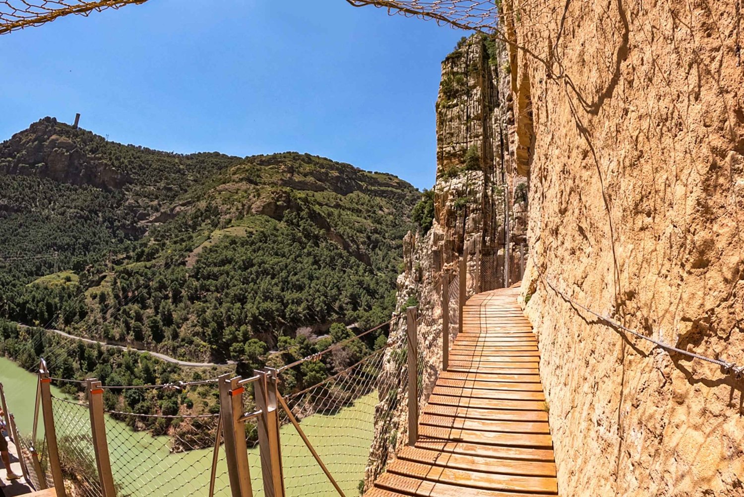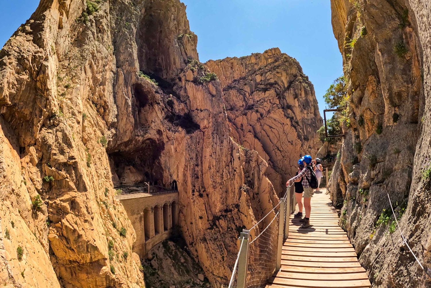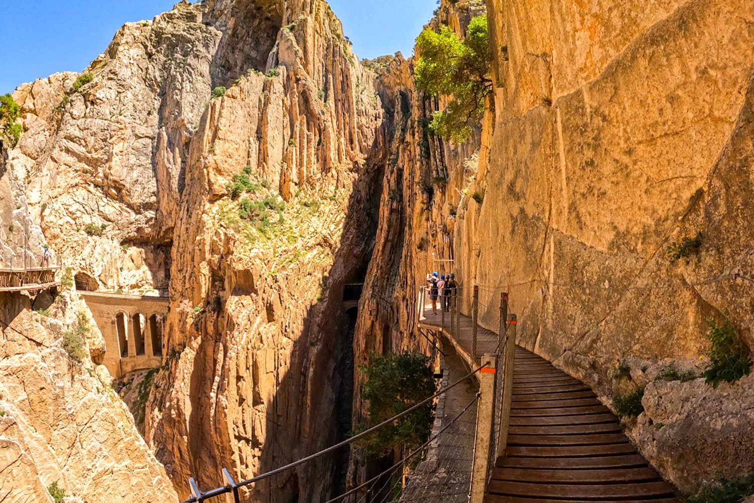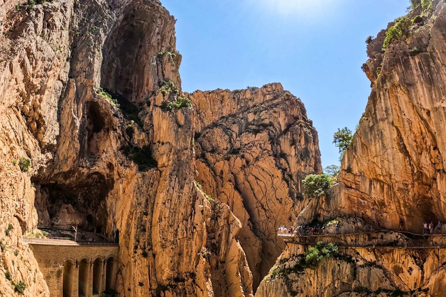 Bestaune die atemberaubende Schönheit dieser außergewöhnlichen Umgebung und ihre fesselnde Geschichte. Die gesamte Route wird von 400 Meter hohen Klippen eingerahmt, die an ihrer schmalsten Stelle nur 10 Meter tief sind. Unten stürzen die ungezähmten Ströme des Guadalhorce-Flusses in Richtung Küste.