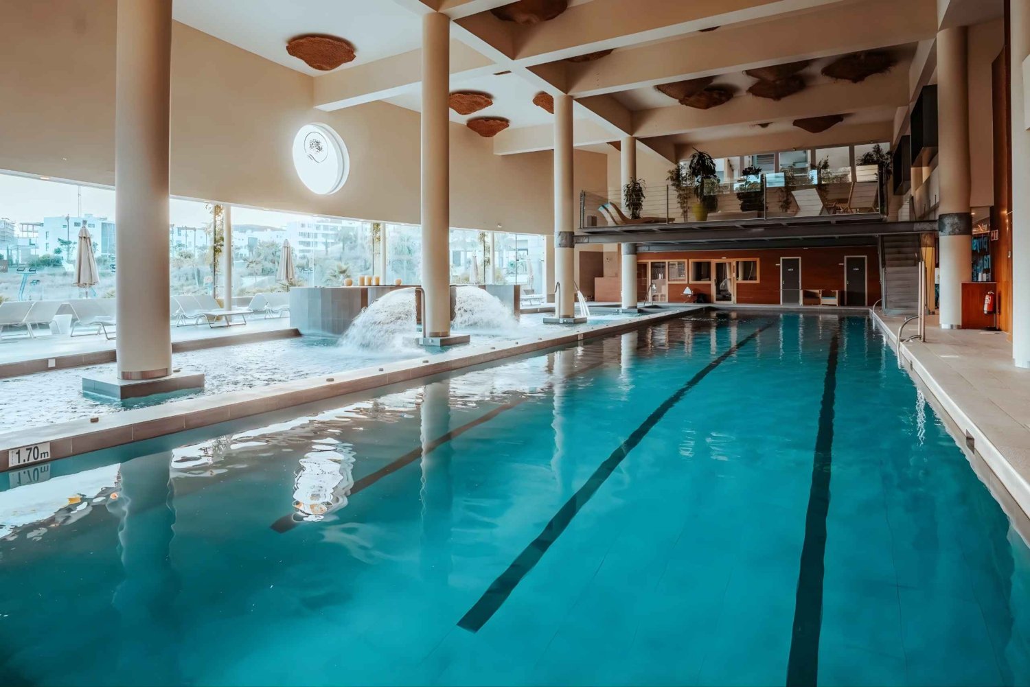 Spa-Rundgang mit dynamischem Pool, Kontrastpools, türkischem Bad, Whirlpool, Sauna und beheiztem Innenpool
