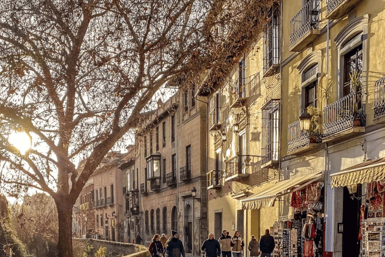 We'll continue walking to the Albaicín , the city's origin and oldest neighborhood, where we'll enjoy the wonderful views from its viewing points, cobblestone streets, and whitewashed houses. Don't forget to stroll along the Darro River, one of the most beautiful and romantic areas in the city; the Paseo de los Tristes.