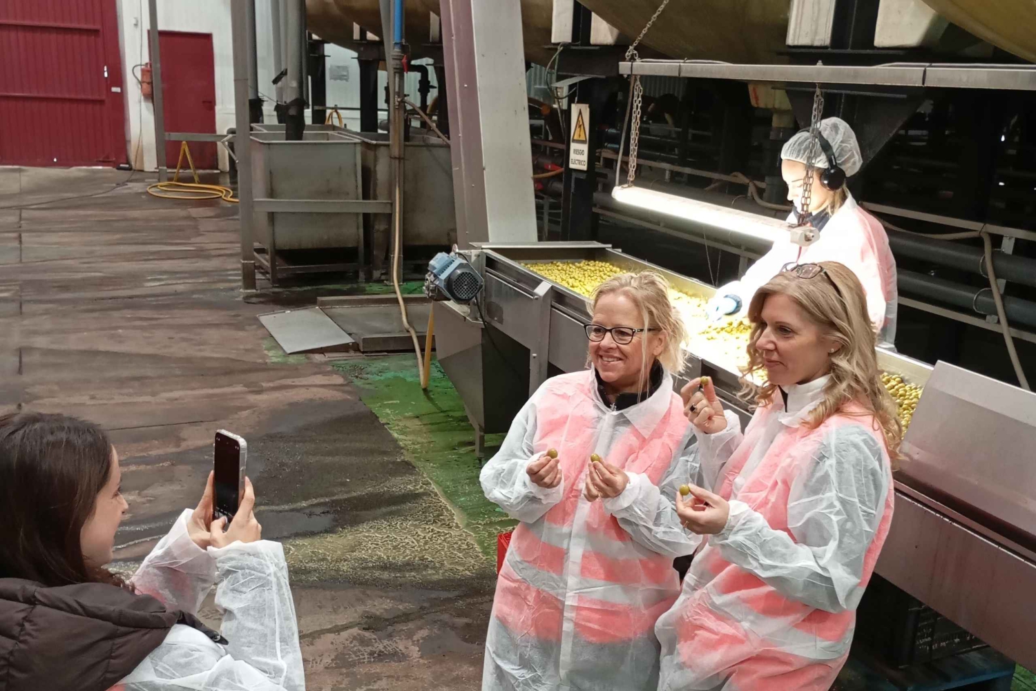 At the cooperative, we'll have the most spectacular moment as we walk through the different sections to understand how grapes turn into wine, and olives into oil, as well as table olives for snacks. I don't want to spoil the surprise, but this is where everyone in the group is always left in awe.