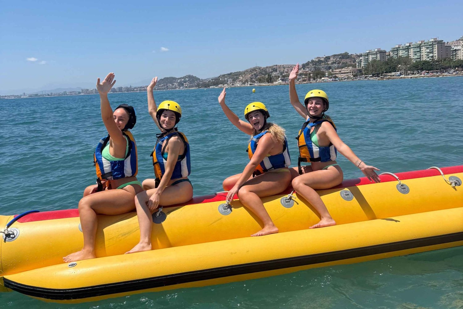 Divertiti con i tuoi amici in mare trainati da un banana boat a tutta velocità. Malaga Sea Experiences offre a Malaga la possibilità di praticare sport acquatici. Tra questi è possibile noleggiare barche fino a 12 persone, catamarani, paddle sup, wakeboard, banana boat e windsurf. Siamo un'azienda che si occupa di attività nautiche, il banana boat può portare fino a 8 persone. Il gommone è dotato di un potente motore che ti permetterà di andare a tutta velocità. Ti divertirai un sacco. Siamo a Playa del Palo. L'orario dell'attività va concordato direttamente con il fornitore dopo la prenotazione.