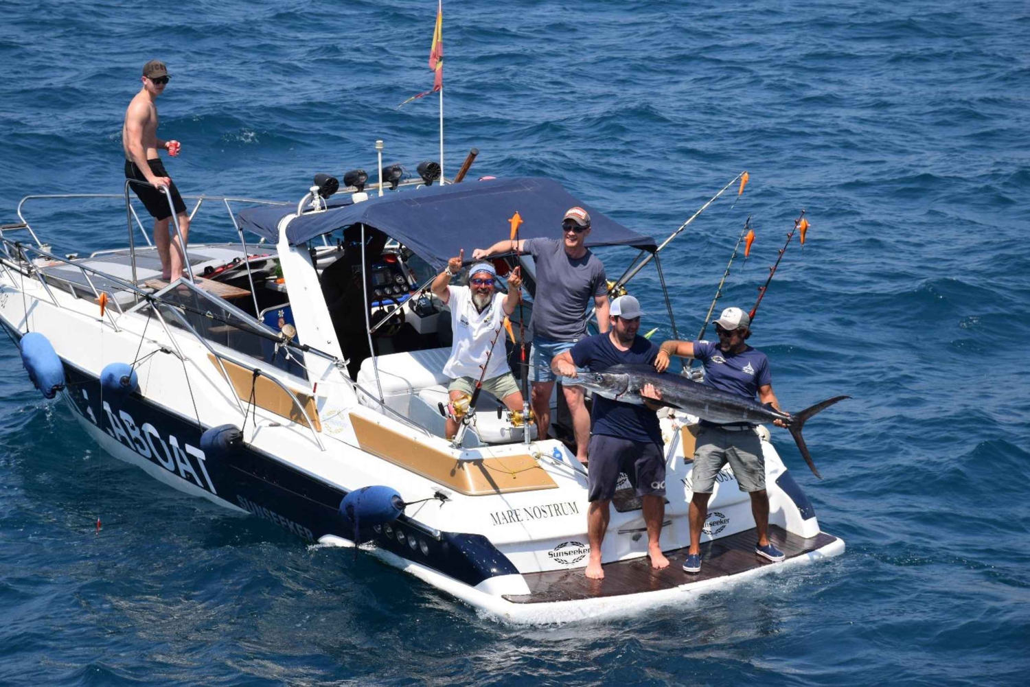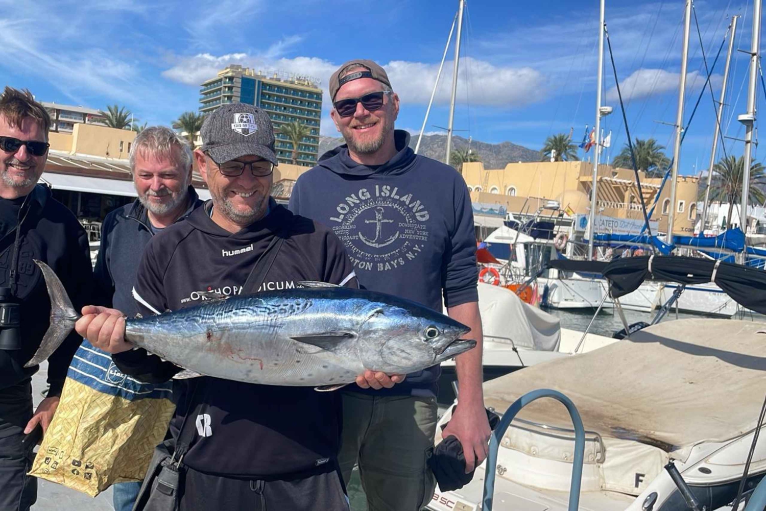 Stap aan boord voor een onvergetelijke privé-expeditie tonijnvissen, op maat gemaakt voor maximaal 8 personen en verspreid over 6 opwindende uren in de wateren van de Costa del Sol. We vertrekken om 8:00 uur 's ochtends vanuit de jachthaven van Fuengirola en varen 5-10 mijl uit de kust naar visgronden die bekend staan om hun overvloed aan tonijnsoorten zoals bonito, witte tonijn en blauwvintonijn.