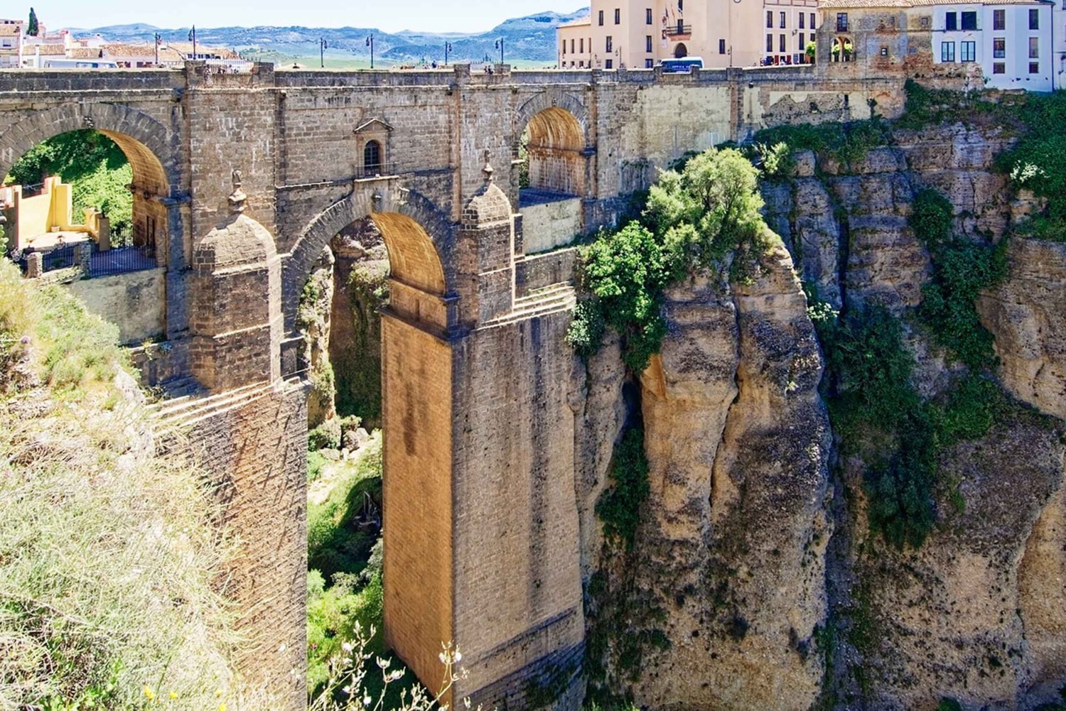 Następnie dotrzesz na dworzec autobusowy w Rondzie, aby kontynuować wycieczkę pieszo i odkryć miasto. Zobacz niesamowite widoki z Puente Nuevo, która przecina rzekę Tajo, i podziwiaj stare miasto, muzea i katedrę.