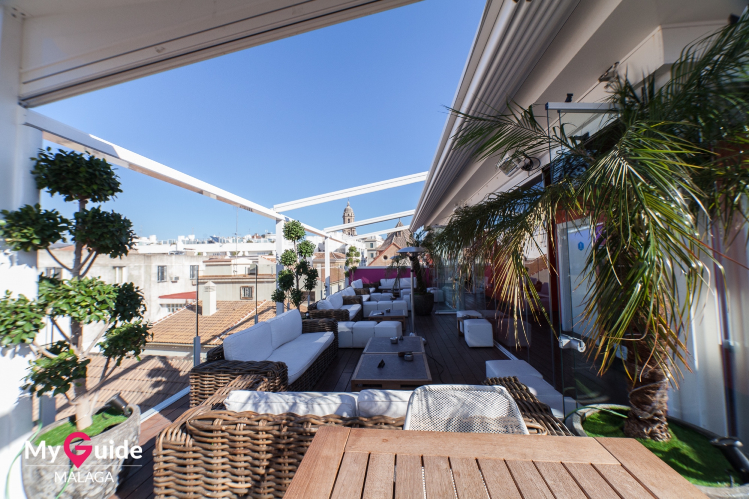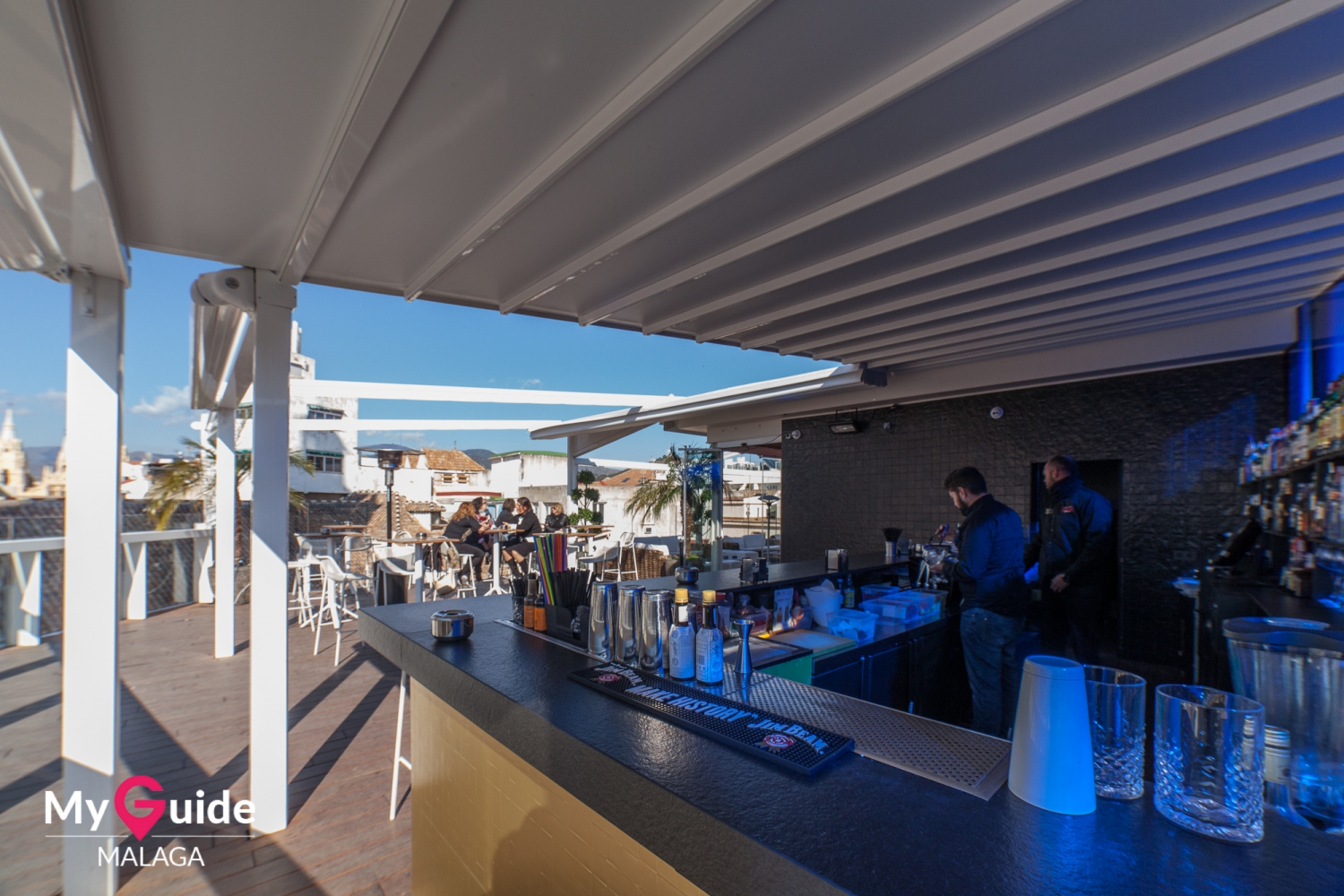Terraza de San Juan znajduje się w samym sercu starego miasta na szczycie uroczego butikowego Premium Hotel Málaga. Taras na dachu jest zaskakująco duży, składa się z trzech wyraźnych obszarów, posiada dużo miejsc siedzących, dwie w pełni wyposażone bary i fantastyczne widoki na dachy tego bardzo starego fragmentu miasta. Bar dominuje nad wieżą starożytnej świątyni św. Jana Chrzciciela, której przynosi groźny cień na otwartą przestrzeń, niemal tak, jakby była częścią projektu. Jego starożytne kamienne elementy i design dodają dramatycznego i historycznego nastroju do tego, co faktycznie jest stylowym i minimalistycznym wyglądem, jak hipsterski bar na planie filmowym. Jest to doskonałe miejsce na imprezy i drinki, a także na delektowanie się kawą w słoneczne popołudnia. Z wieżą kościoła oświetloną nocą i starymi dachami i budynkami dookoła, jest to naprawdę atmosferyczne i stylowe miejsce do spędzenia czasu. Hotel poniżej posiada wspaniałą restaurację, więc można łatwo zjeść kolację, a następnie zostać na kieliszek alkoholu.