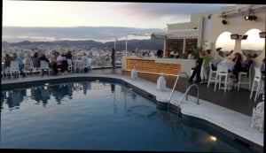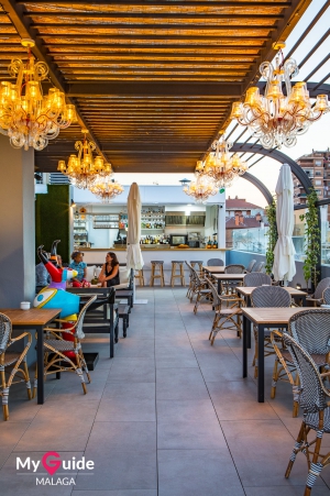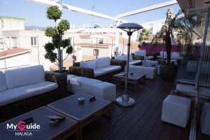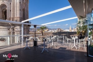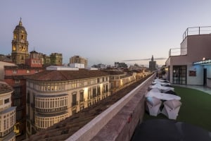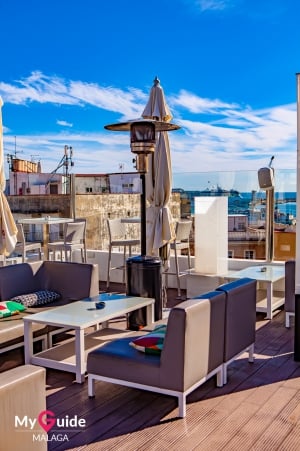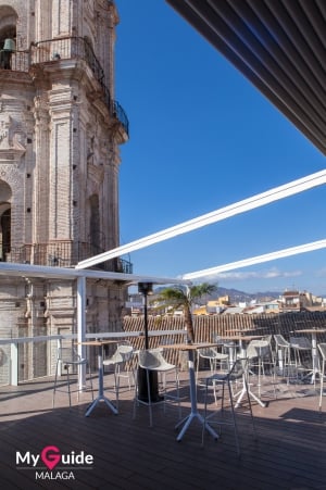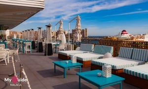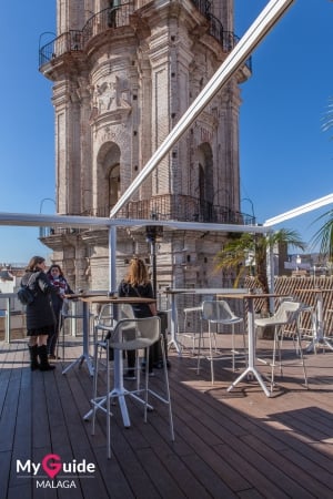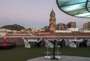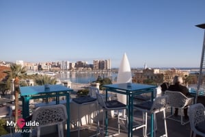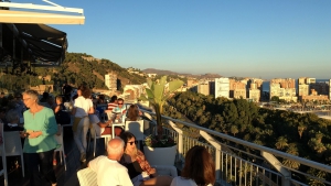 Det finns också en stor variation av vyer i staden. En funktion som dominerar de flesta av skylines från terrasserna är den gamla damen själv, Málagas katedral, snedvriden som tittar ner med sin saknade torn, skapar en spektakulär bild, speciellt upplyst på natten. Det finns terrasser med havsutsikt också, där den spektakulära nya hamnrenoveringen som Muelle Uno kan ses. Definitivt den högsta terrassen är den på AC Malaga Palacio Hotel. Upp på 14: e våningen med en magnifik panoramavy över staden kan du ta en drink eller en måltid, och till och med en simtur. I termer av vyer kan inte mycket konkurrera med AC, eftersom det nästan högsta byggnaden i centrum och har utmärkta vyer på tre sidor. Det är en långt stilig bar och terrass med den lilla poolen i ena änden. Tvärs över gatan på Hotel Molina Larios finns en mindre lustigare terrass på olika nivåer, med till och med en liten pool trångt in i de nyfikna små utrymmena. Den har fin utsikt mot hamnen och är intressant för sitt program med kulinariska händelser och provsmakningar, lika mycket som dess karaktärsfulla små utrymmen. I närheten, med utsikt över Plaza de la Marina, på kanten av Soho, med utsikt över AC, det gamla palatset och slottet bakom och längs hamnfronten, är Valeria Hotel Terrace. Dess färgglada randiga solstolar ger det en havsretro-känsla, förstärkt av det närbelägna pariserhjulet. Det är en luftig öppen terrass, också med en liten pool, och är närmast av dem alla till det faktiska havet. Dessa vyer är lika speciella på natten, men förmodligen den mest kända vyn är från Parador del Gibralfaro. Även om det inte strikt sett är en takterrass, är den den högsta terrassen i Malaga, belägen högt på berget ovanför staden, vilket ger besökaren den pittoreska panoramavyen av staden. Här finns det jazzkvällar och gammal världens charm, borta från vita soffor och DJ: s i den hippare scenen nedan.