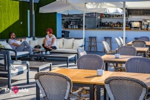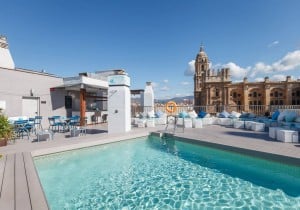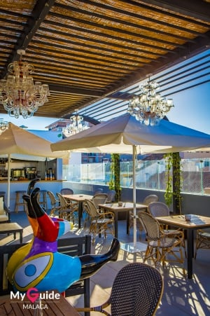 Konstbarrio Soho är inte utan konkurrenter. Det charmiga lilla hotellet Bahia Soho har en söt liten terrass, dess utsikt är en verkligt stadsbild av en blandning av arkitektur. Därifrån kan du se takterrassen Mariposa Hotel, på nästa kvarter. Öppnad i maj 2018 är det en av de rymligare terrasserna med en design av naturligt trä och några flott multifärgade skulpturer. Innan vi kommer till den gamla stan på riktigt finns det två rymliga och spännande förslag på motsatta sidan av floden. The Terrace Lob är en stor takterrassrestaurang på varuhuset El Corte Ingles översta våningen. Detta är en high-end gastronomisk restaurang snarare än den mer vanliga cocktailbaren, men det finns också en bekväm barområde. Designen är industriell chic och känslan är modern och maten definitivt sådan. Längre upp längs floden är takterrassen på Malaga Centro Hotel Aurea. Denna har tre olika områden på splittnivåer. Det finns den rymliga huvudbaren, där frekventa livemusikevenemang äger rum, en separat anständigt stor pool och en solterrass. Det är precis över floden från den gamla stan och högt upp för att ge en god utsikt över större delen av den gamla stadskärnan och större delen av den nya staden också.